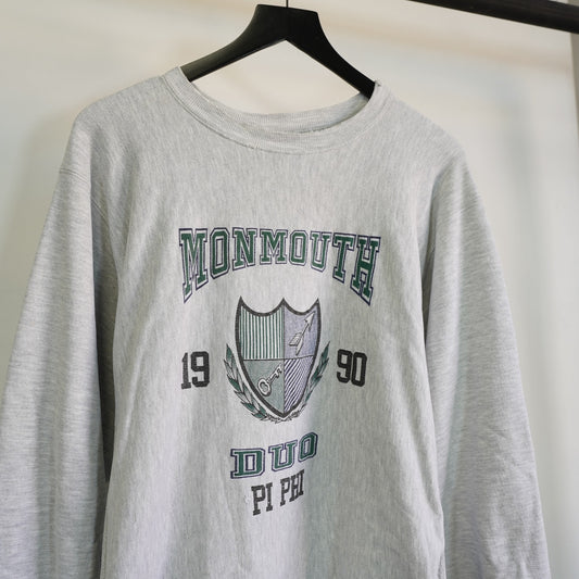 (L) Vintage 90s Monmouth College Champion Reverse Weave Gray Sweatshirt