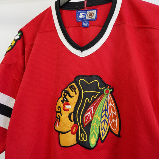 (Youth L/XL) Vintage Chicago Blackhawks Starter Stitched Hockey Jersey Adult S Red