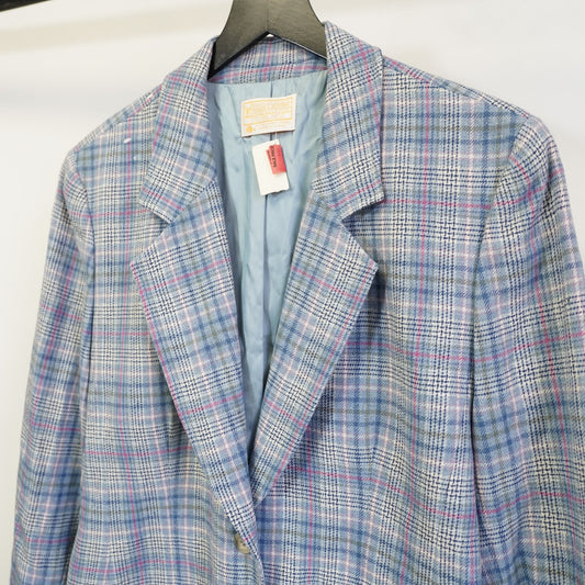 (Women's L) Vintage Wool Pendleton Plaid Jacket Blazer Tartan USA Blue White New