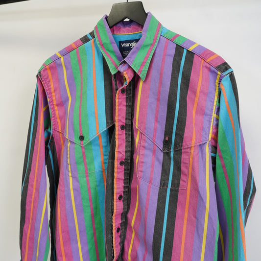 (L) Vintage Wrangler Brush Popper Stripe Western 16.5-35 Button Up Shirt Multicolor