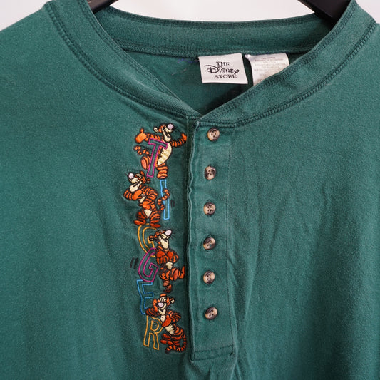 (XXL) Vintage Tigger Winnie the Pooh Embroidered Henley Men's XXL Green Disney