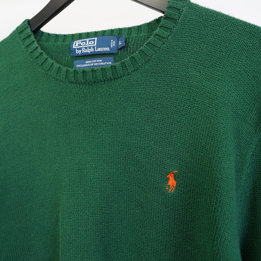 (L) Vintage Polo Ralph Lauren Green Knit Sweater Men's L 100% Cotton Preppy