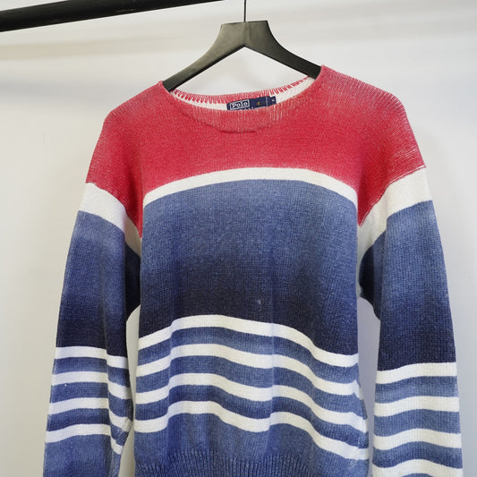 (M) Vintage Polo Ralph Lauren Knit Oversized Chunky Striped Sweater Men's M Blue 90s
