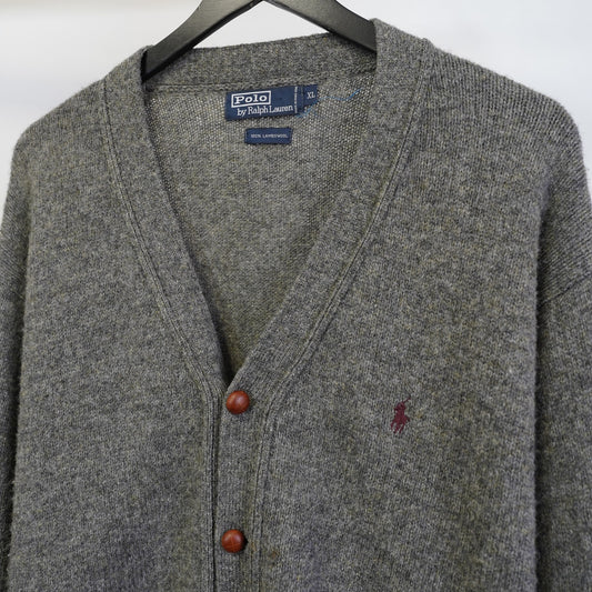 (XL) Vintage Polo Ralph Lauren 100% Wool Knitted Cardigan Sweater Men's XL Gray
