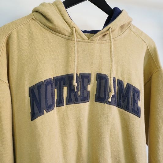 (L) Vintage Notre Dame Fighting Irish Embroidered Starter Hoodie Jacket Gold