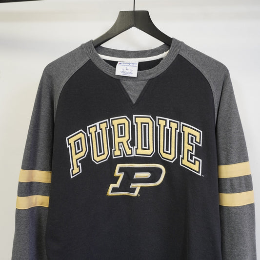 (L) Purdue Boiler Makers Embroidered Champion Sweatshirt Men's L Black Crewneck