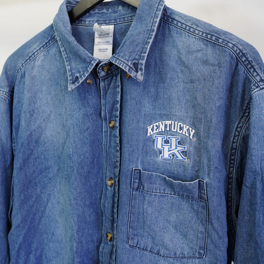 (XL) Vintage UK Kentucky Wildcats Embroidered Denim Button Up Shirt Men's XL Blue