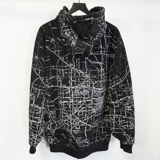 (XL) Vintage Houston City Map Embroidered Hip Hop Hoodie Men's XL Black Y2K Astros