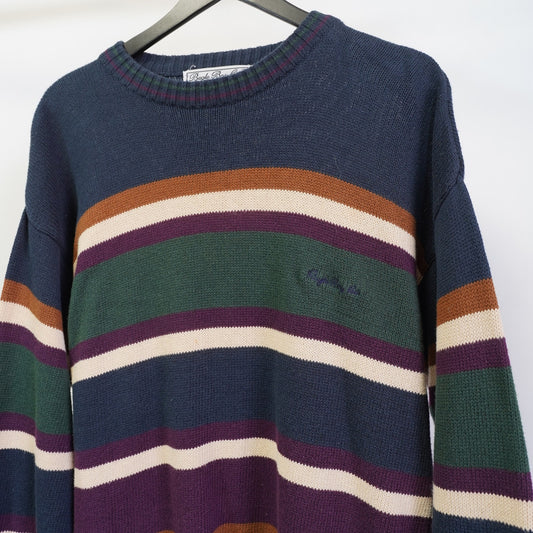 (L) Vintage Bugle Boy 90s Striped Knit Sweater Men's L Multicolored Cotton Preppy