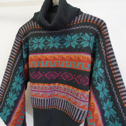 (Women's M) Vintage Hunters Run Knit Sweater Multicolor Geometric 90s Cottage