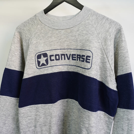 (L) Vintage 80’s Converse All Star Striped Crewneck Sweatshirt Gray