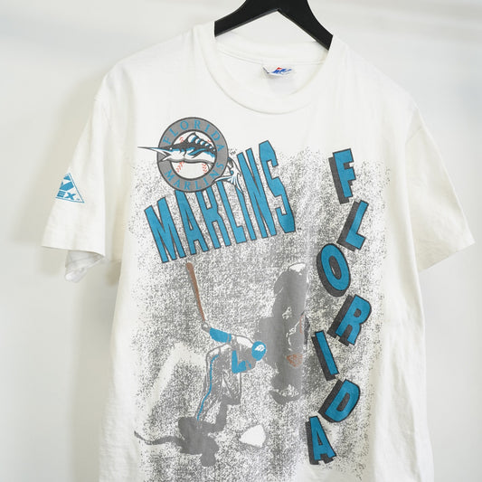 (L) Vintage Florida Marlins Apex One AOP 90s Single Stitch T-Shirt Men's L White