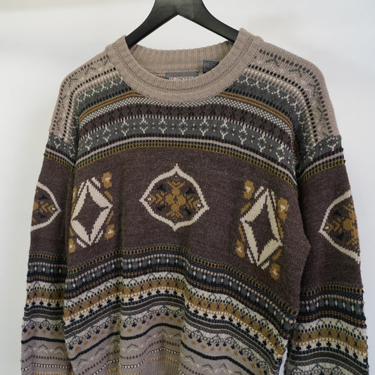 (M) Vintage J.T. Beckett Geometric Knit Sweater Men's M Brown Tan Boho Indie Retro