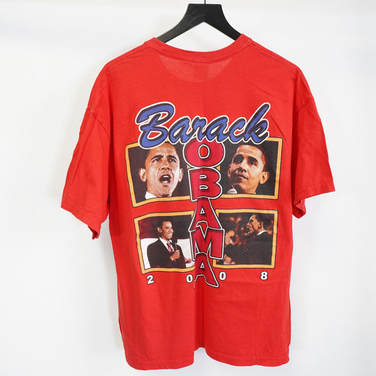 (XL) Vintage Barack Obama 2008 Black History Rap T-Shirt Men's XL Red Hope Y2K