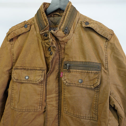 (S) Levi’s Twill Military Field Jacket Men's S Tan Cotton Full Zip Indie Western