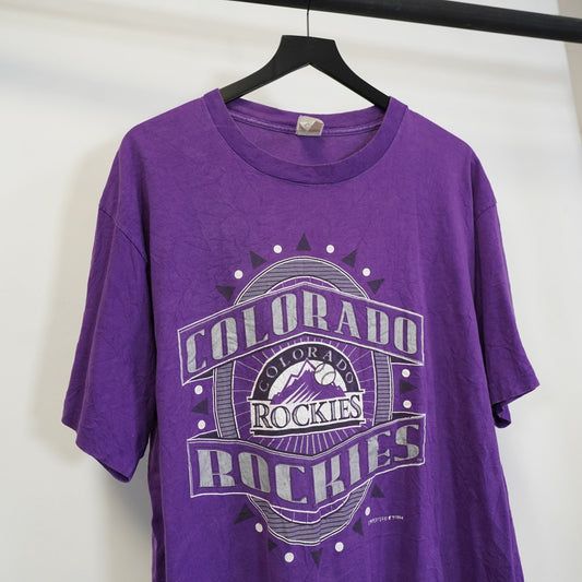 (XL) Vintage Colorado Rockies 90s Baseball Single Stitch T-Shirt Men's XL Purple MLB