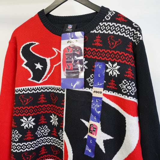 (L) Houston Texans Knit Christmas Sweater Men's L NFL Team Apparel Red Blue New