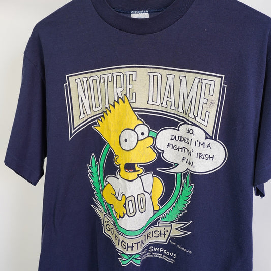 (XL) Vintage Bart Simpson Notre Dame Fighting Irish 90s T-Shirt Men's XL Logo 7 Blue