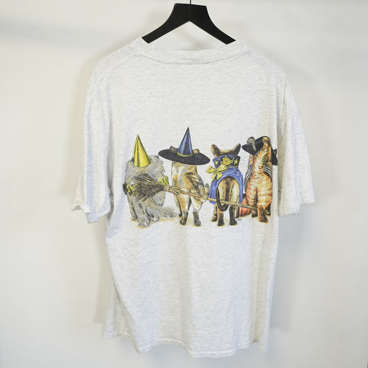 (XL) Vintage Halloween Cats Spooky Kitty T-Shirt Men's XL Witch Pumpkin Costume 90s