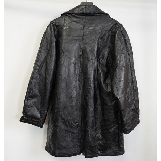 (L) Vintage Lambskin Genuine Leather Italian Mosaic Maxam Trench Coat Men's L Black