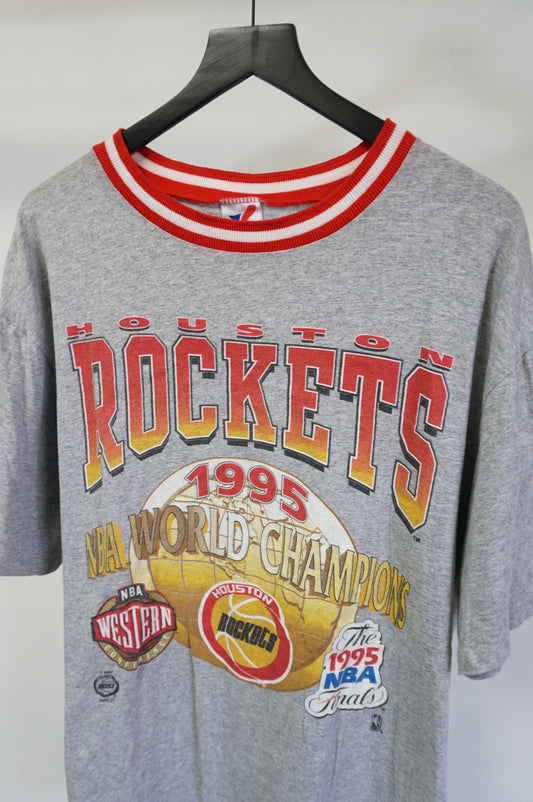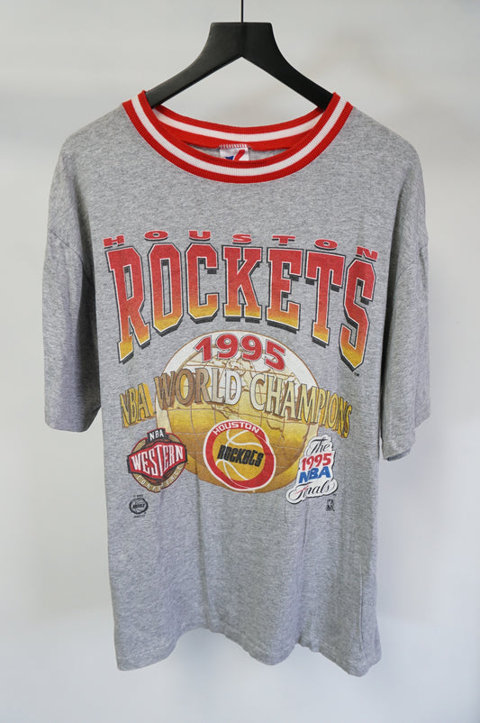 (M) Vintage Houston Rockets 1995 NBA Champions Single Stitch T-Shirt Men's M Gray