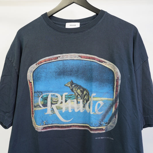 (L) Rhude Lone Wolf Graphic T-Shirt Men's L Navy Blue Grey Streetwear
