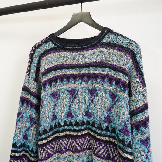 (M) Vintage Expressions 90s Geometric Knit Sweater Men's M Purple Aqua Retro 80s