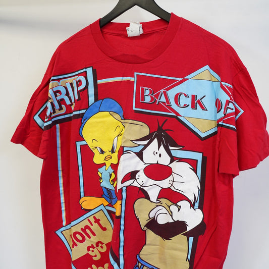 (XL) Vintage Tweety & Sylvester Looney Tunes T-Shirt Men's XL Red AOP 90s Single