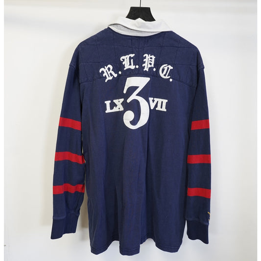 (XXL) Ralph Lauren Polo Rugby Shirt Mens XXL Blue Stripes Heavy Embroidered PRL Bear