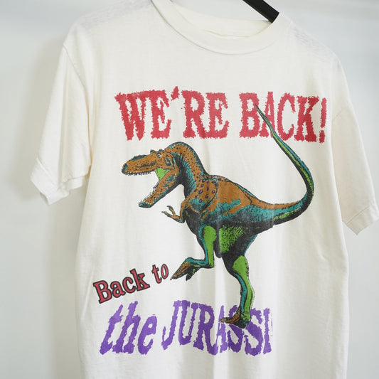 (L) Vintage Jurassic Park T-Rex Dinosaur Single Stitch T-Shirt Men's L White Raptor