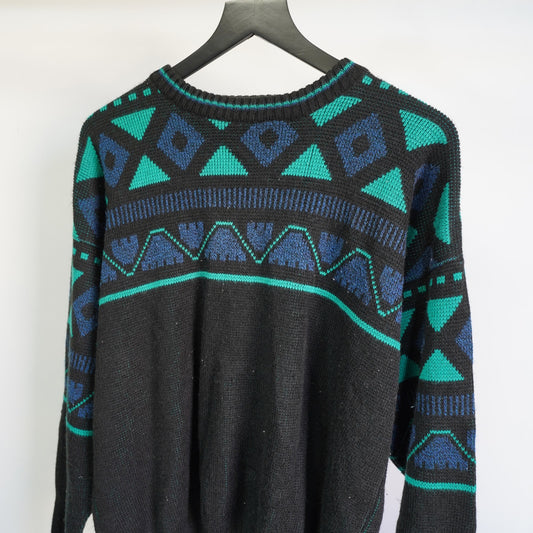 (L) Vintage 90s Le Tigre Black Knit Sweater Retro Abstract Aztec