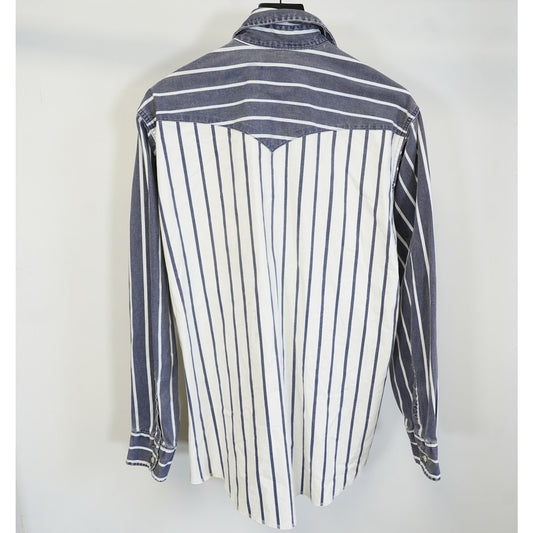 (L) Vintage Wrangler Brushpopper Western Striped Button Up Men's 16.5-35 Large White