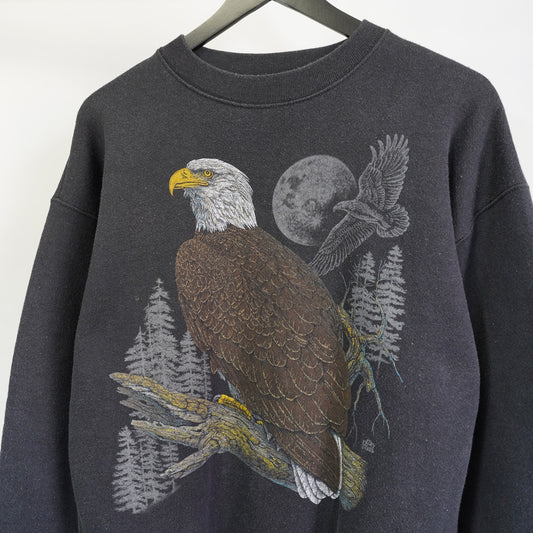 (L) Vintage 80s Eagle Nature Crewneck Sweatshirt Men's L Black Gorpcore Hiker Animal