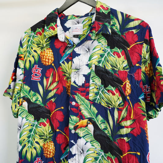 (L) Vintage St. Louis Cardinals Floral Hawaiian Button Up Shirt Multicolored