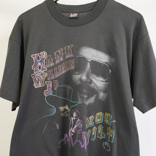 (XL) Vintage Hank Williams Jr. Hog Wild Bocephus Band Tour T-Shirt Men's XL Black 90s