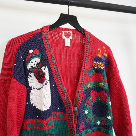 Vintage Wip Stitch Knit Holiday Christmas Sweater 90s Women's M Santa Frosty Red