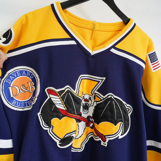 (XL) Vintage Austin Ice Bats Sewn AK Hockey Jersey Men's XL 2002-2003 Blue Yellow