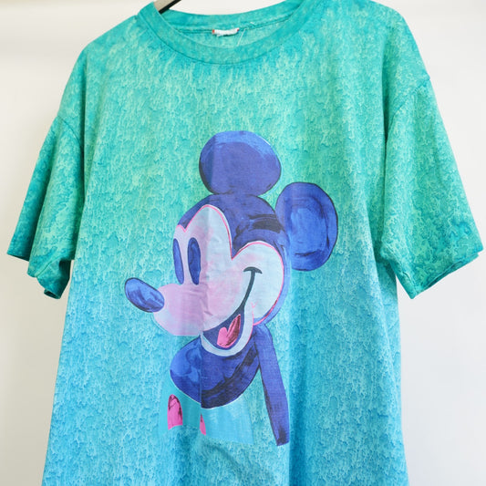 (XXL) Vintage Mickey Mouse Single Stitch Tie Dye Disney T-Shirt Men's XXL 90s Blue
