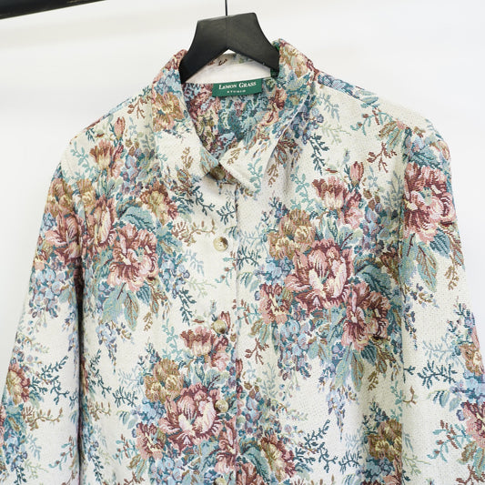 (Women's XL) Vintage Lemon Grass Studio Floral Tapestry Jacket Women's XL Tan Cottage Coat