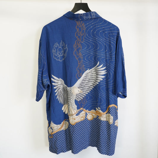 (XXL) Vintage Harley Davidson Screamin Eagle Hawaiian Shirt Men's XXL Blue Motorcycle