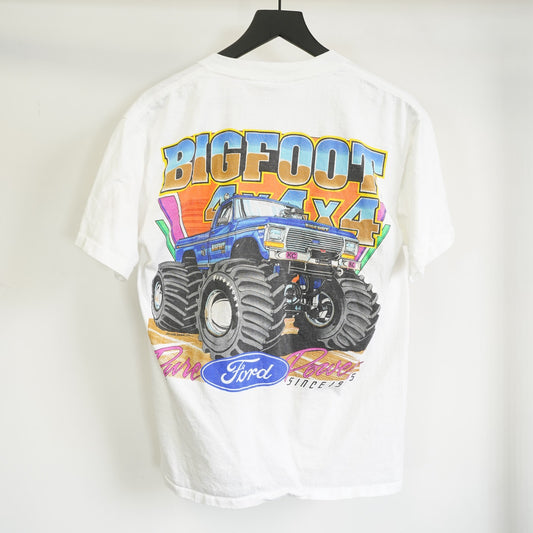 (M) Vintage Big Foot Monster Truck 90s Ford F-150 T-Shirt Men's M White Neon Retro