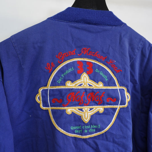 (L) Vintage Naf Naf French Bomber Flight Jacket Men's L-XL Embroidered Blue