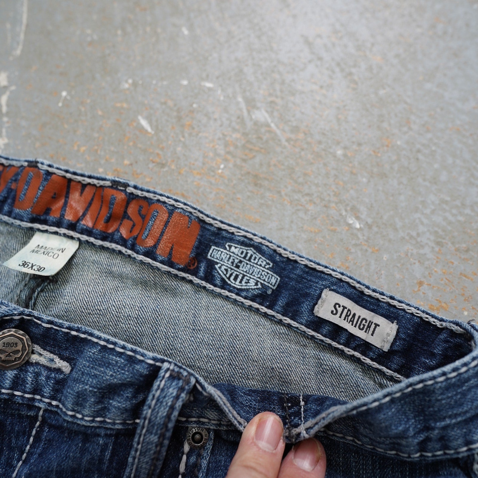 (36x30) Vintage Harley Davidson Straight Leg Biker Blue Jeans Men's 36x30 Denim Y2K 2000