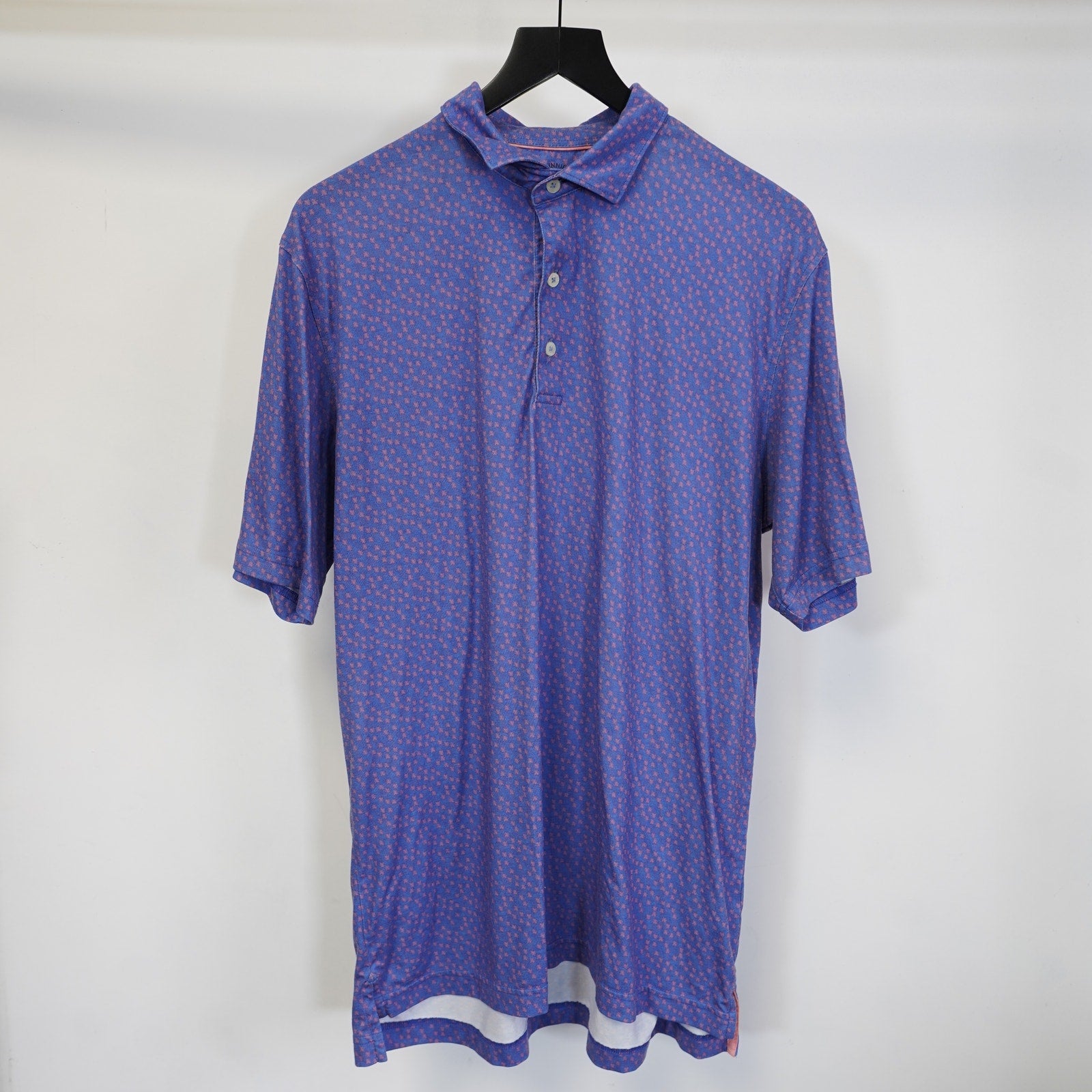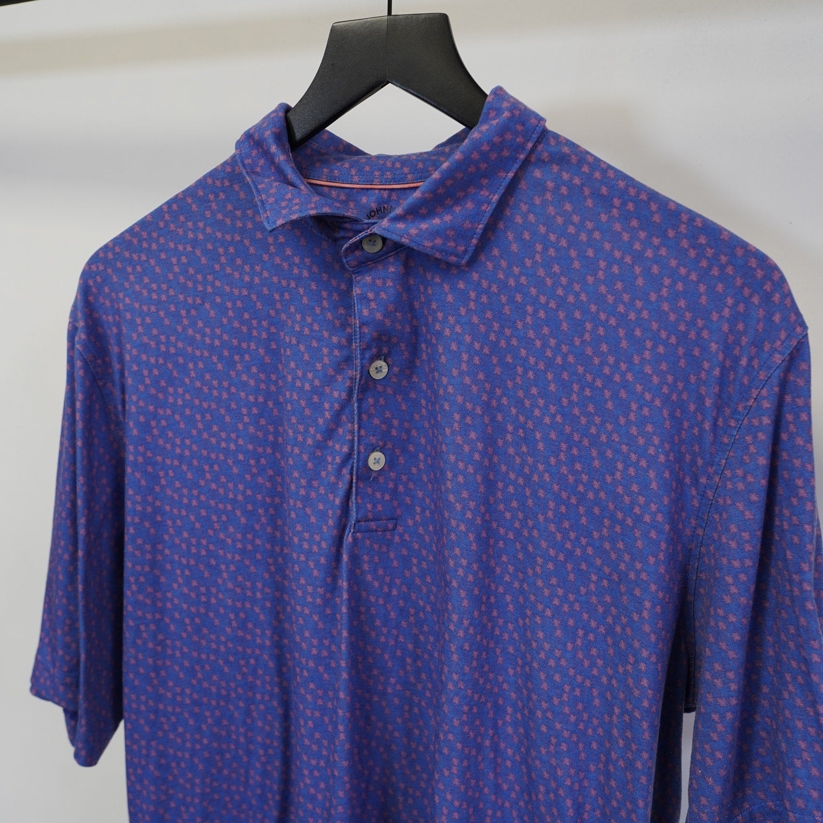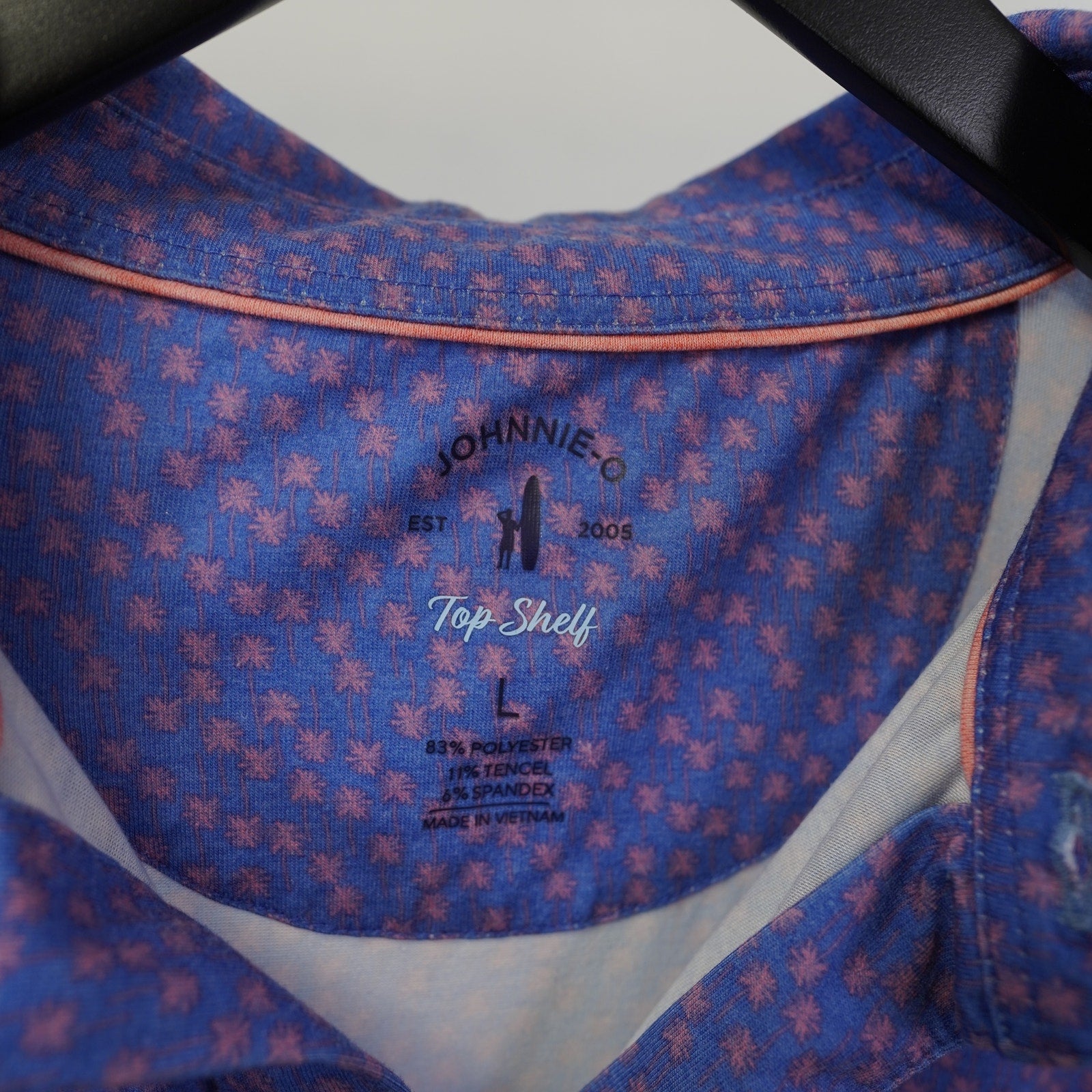 (L) Johnnie-O Top Shelf Palm Tree Golf Performance Polo Shirt Men's L Blue Pink