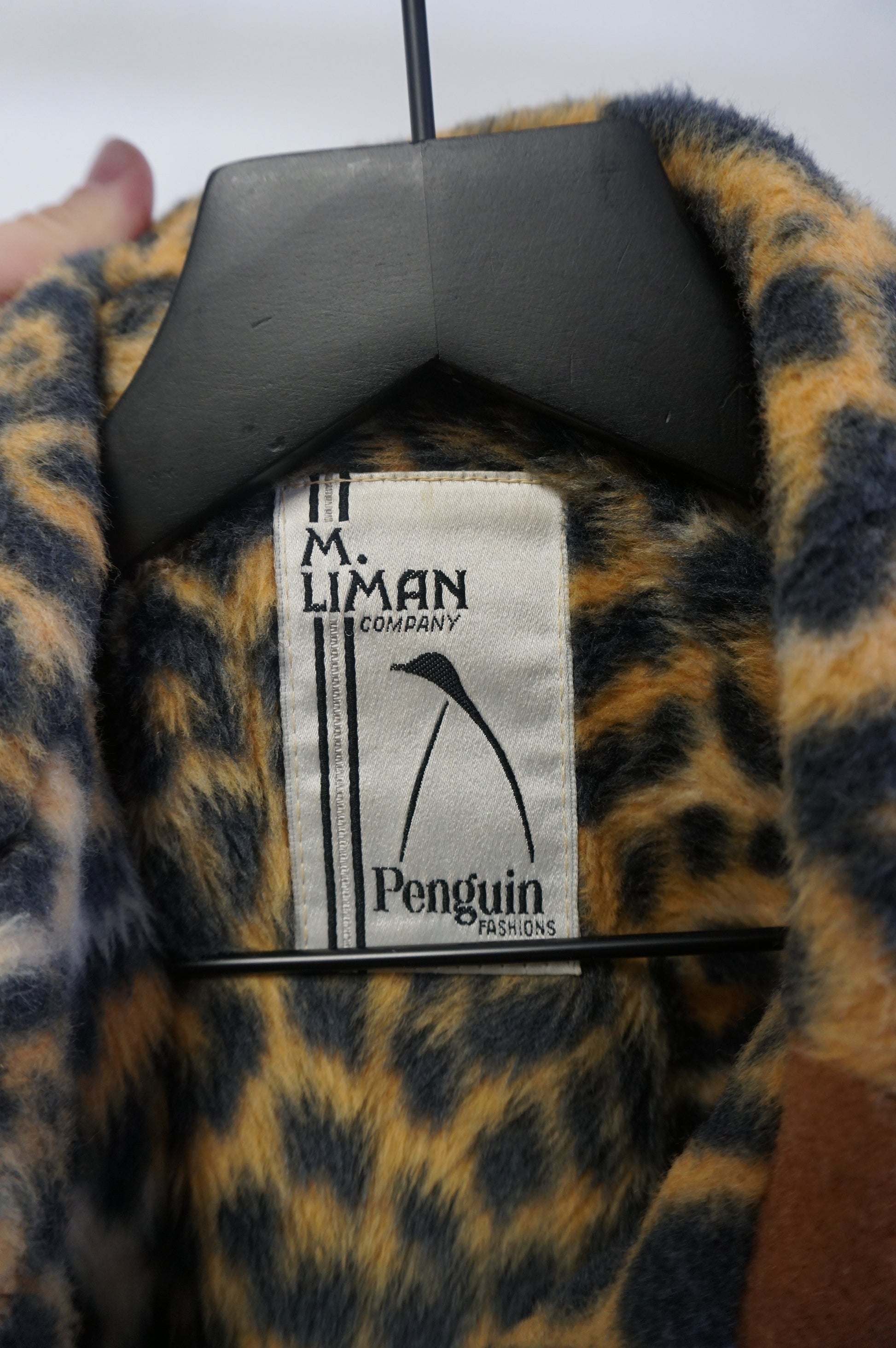(Women's L) Penguin Fashions Vtg Leopard Print Interior 100% Wool Coat w/ Gloves