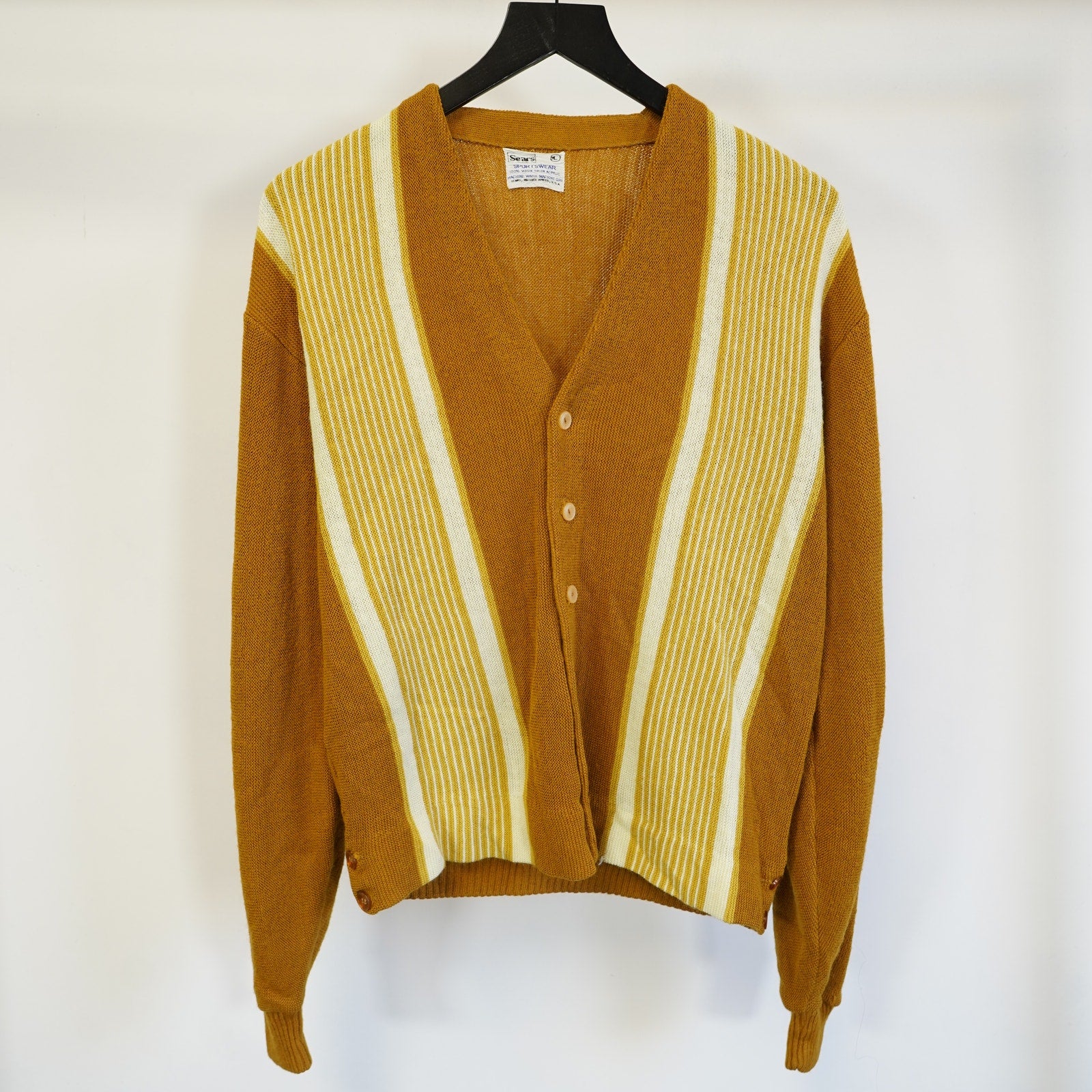 (L) True Vintage 1960s-70s Sears Sportswear Yellow Knit Striped Cardigan Men's L Sweater