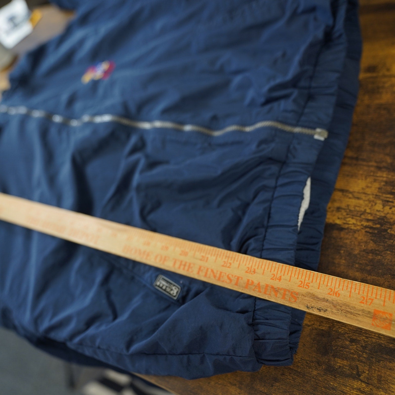 It's a Men's size Large, offering a comfortable fit that's ideal for layering on cooler days or wearing on its own when the weather is mild. The full-zip design makes it super easy to put on and take off, and the classic blue color ensures you'll stand out in the crowd.