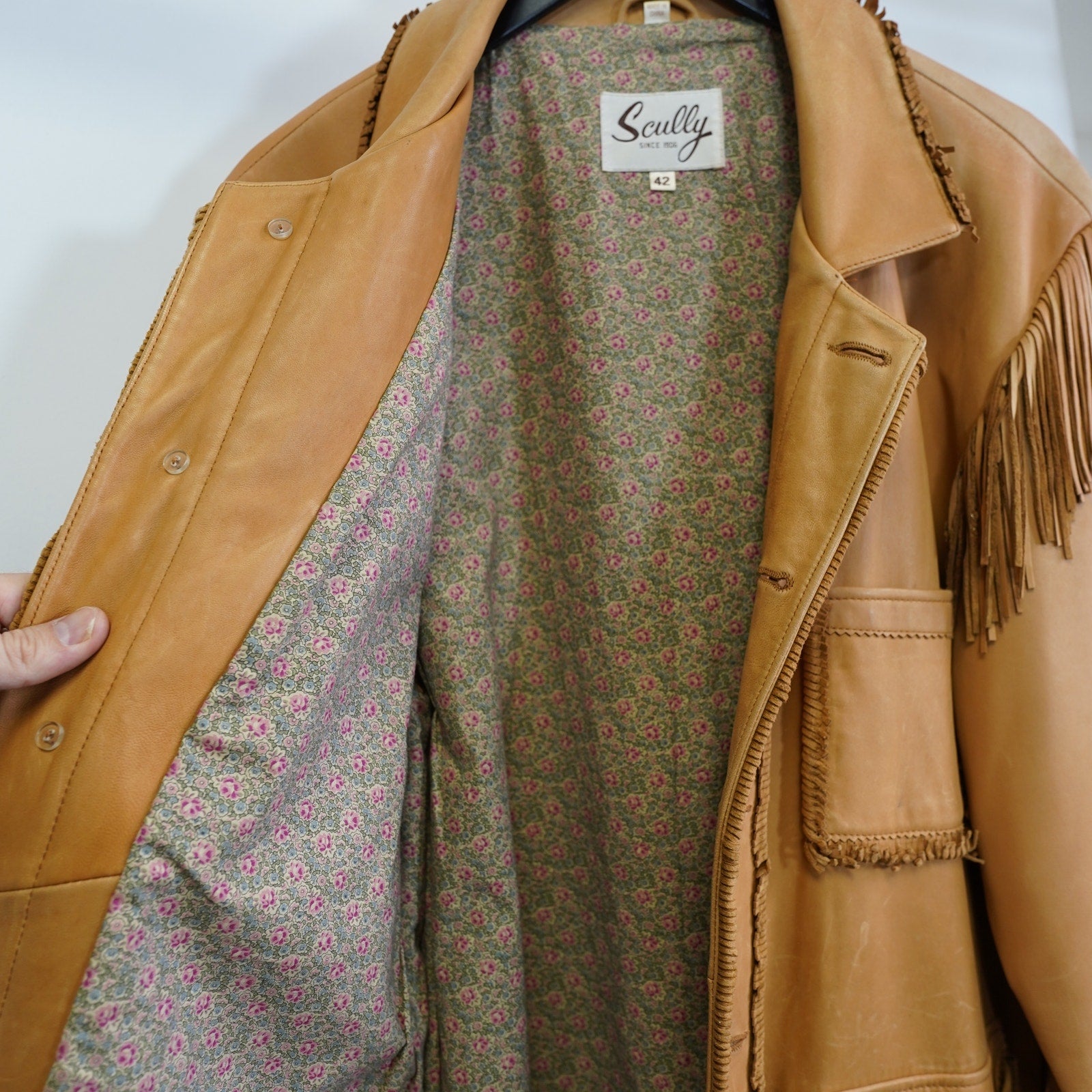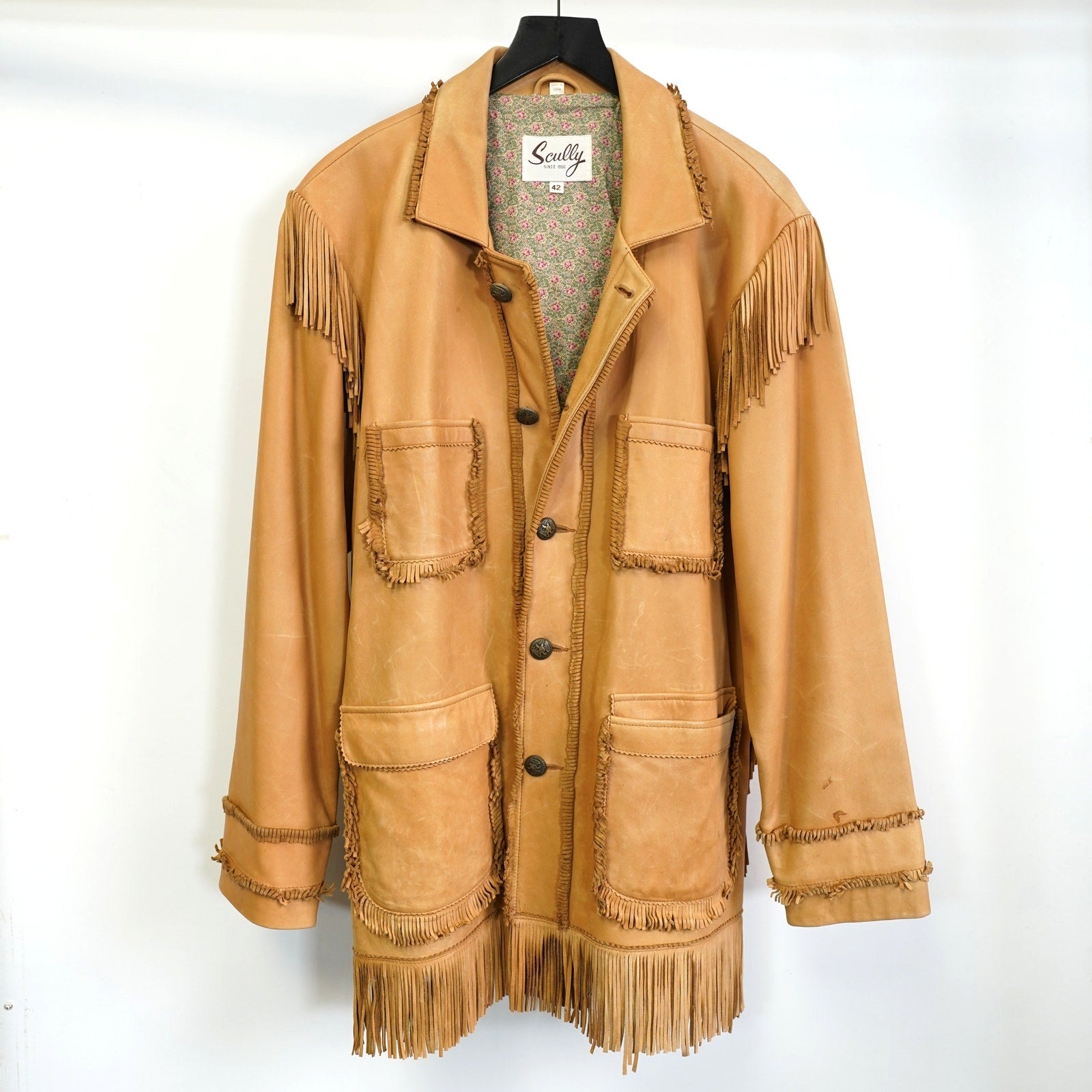 (L) Vintage Scully Genuine Leather Fringe Western Hippie Jacket Men's L Sz 42 Tan