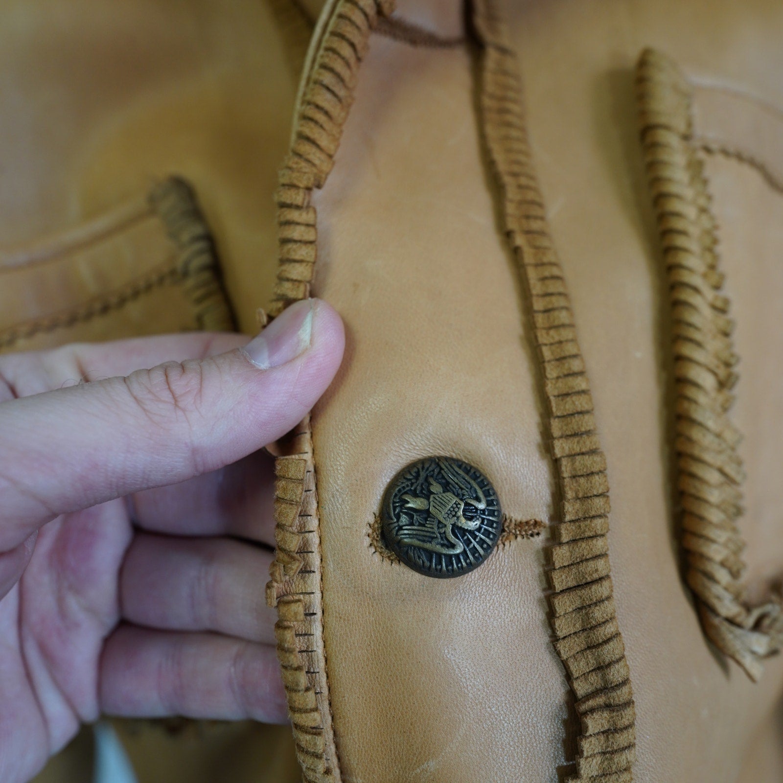 Step out in unparalleled style with this fantastic vintage Scully Men's Genuine Leather Fringe Western Jacket! This stunning tan leather jacket embodies the free-spirited essence of Western and hippie fashion, making it a truly unique find for your wardrobe. Crafted from high-quality genuine leather, it offers both durability and a wonderfully soft feel that only improves with age.