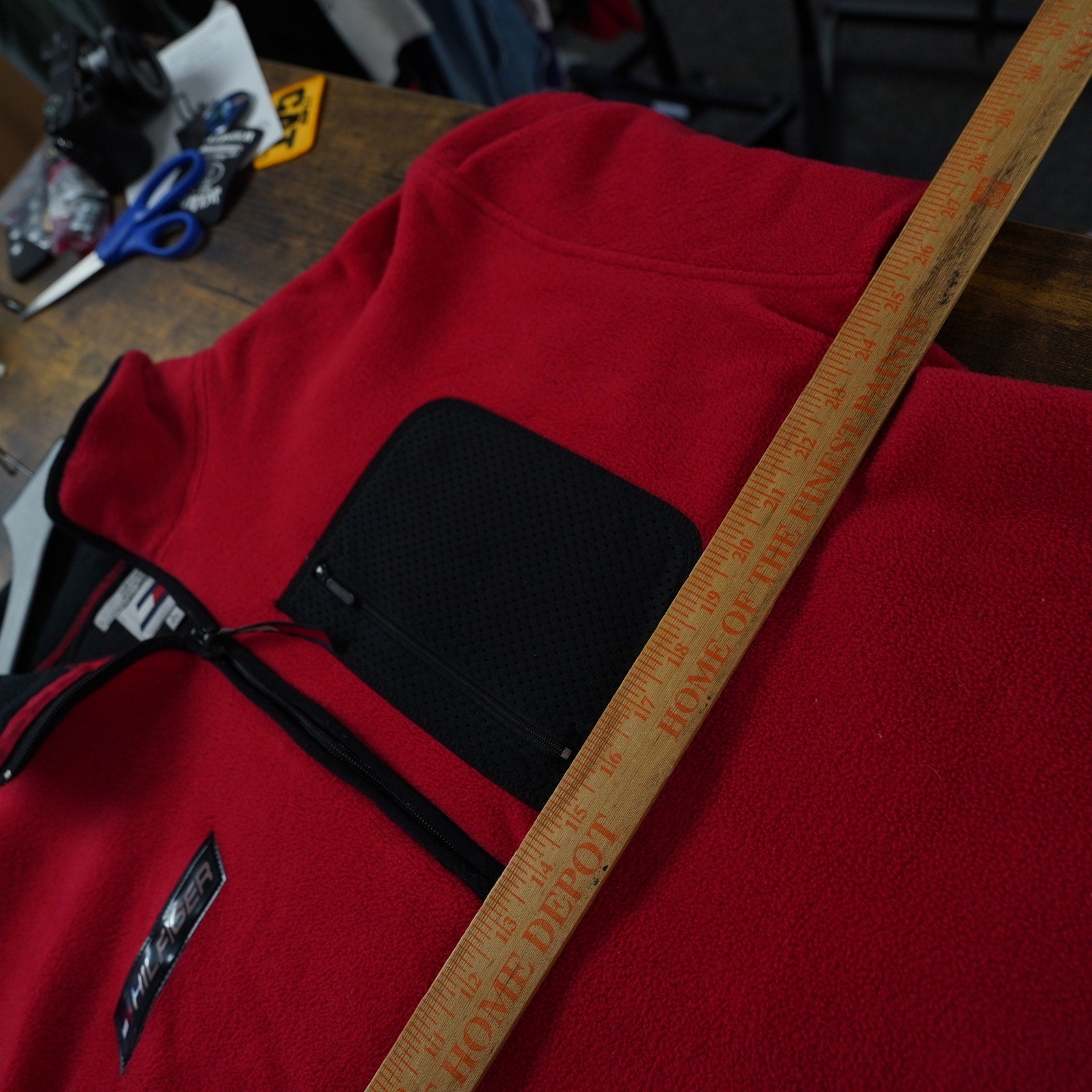 Add a pop of vintage style to your wardrobe with this Tommy Hilfiger Athletics 1/4 zip fleece pullover! This men's size L red jacket is perfect for layering and staying cozy. It's in great vintage condition and ready for a new adventure.